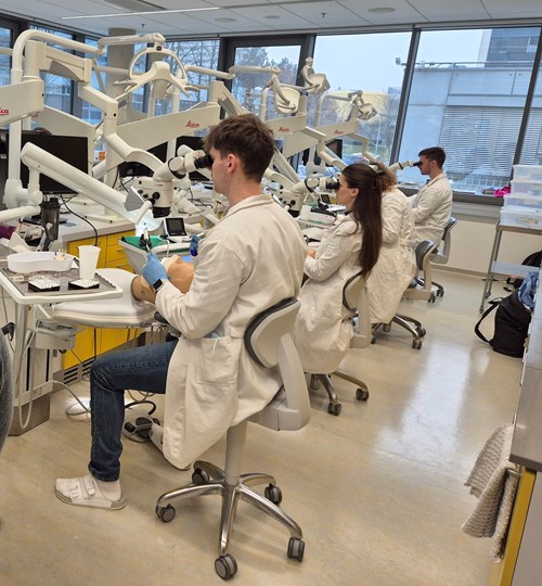 Např. v rámci předmětu Konzervační zubní lékařství I – V studenti preparují kavity všech tříd. Součástí praktických cvičení je také nácvik práce se zobrazovacími metodami – zhotovování intraorálních rtg snímků, použití intraorální kamery a NIR (Diagnocam).